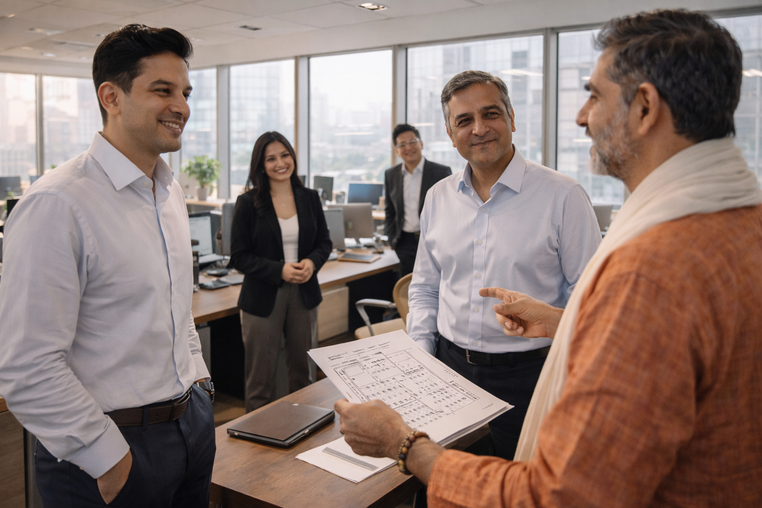 कार्यालय वास्तु परामर्श उत्पादकता, सफलता और सकारात्मक ऊर्जा प्रवाह को बढ़ाने के लिए वास्तु शास्त्र सिद्धांतों का उपयोग करके आपके कार्यस्थल वातावरण को अनुकूलित करता है। हमारे विशेषज्ञ सलाहकार व्यावसायिक वृद्धि, कर्मचारी कल्याण और वित्तीय समृद्धि का समर्थन करने वाले सामंजस्यपूर्ण कार्य वातावरण बनाने के लिए आपके कार्यालय लेआउट, केबिन नियुक्ति, रिसेप्शन क्षेत्र, सम्मेलन कक्षों और समग्र ऊर्जा वितरण का विश्लेषण करते हैं।